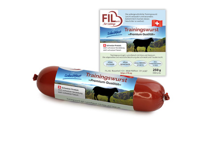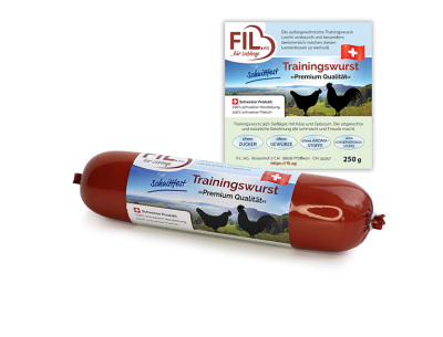 Trainingswurst 99% Geflügel aus Schweizer Tierhaltung mit Galacum und Käse. Eine aussergewöhnliche Trainingswurst, leicht verdaulich und bekömmlich. Ein Leckerbissen für jeden Liebling. Hergestellt in der Schweiz mit Schweizer Rohstoffen.